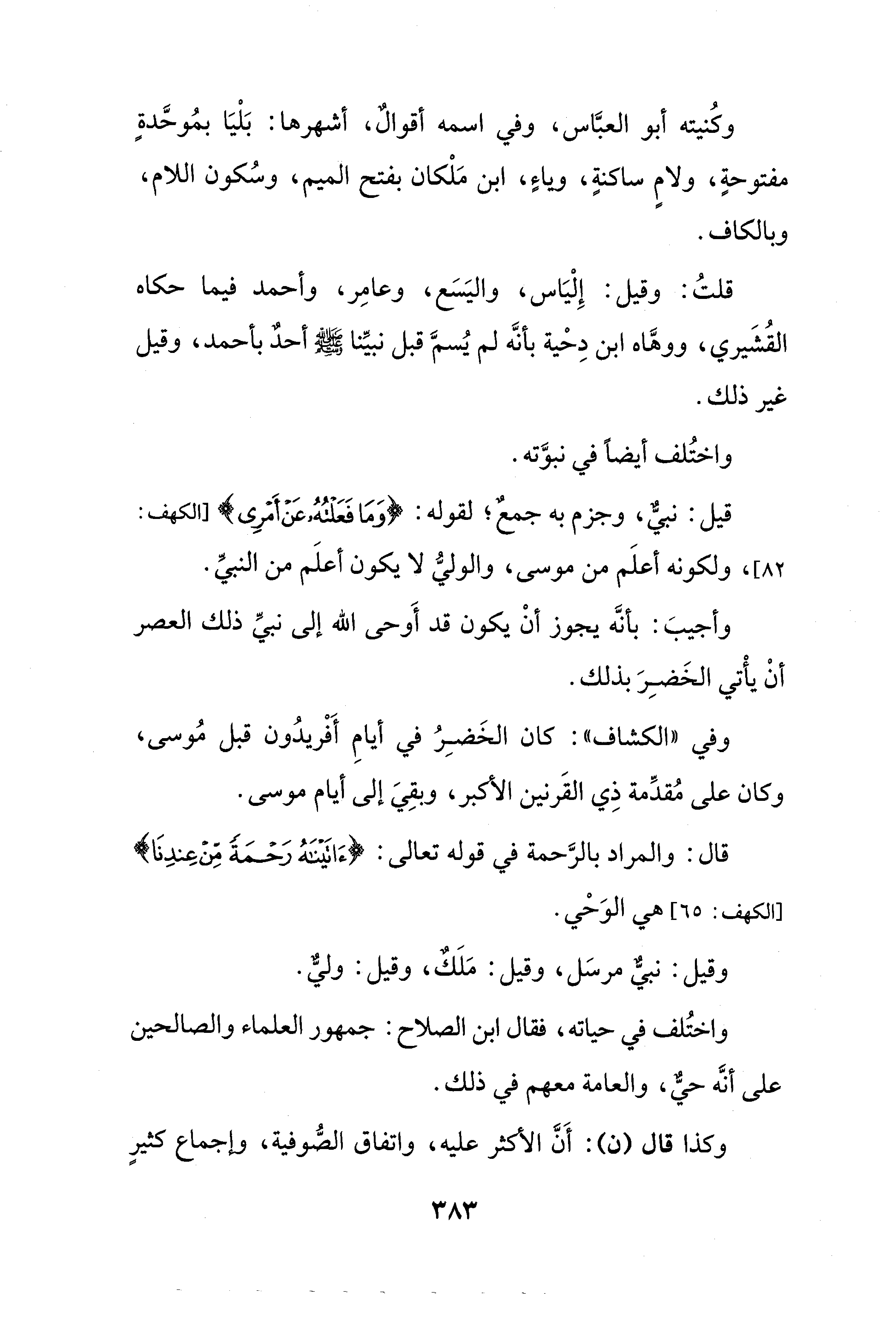 واختُلف في حياته، فقال ابن الصلاح: جمهور العلماء والصالحين على أنَّه حيٌّ، والعامة معهم في ذلك.