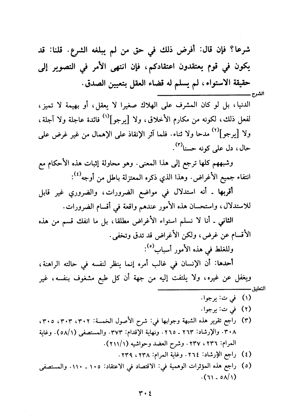 الثاني- أنا لا نسلم استواء الأغراض مطلقا، بل ما انفك قسم من هذه الأقسام عن غرض، ولكن الأغراض قد تدق وتخفى.