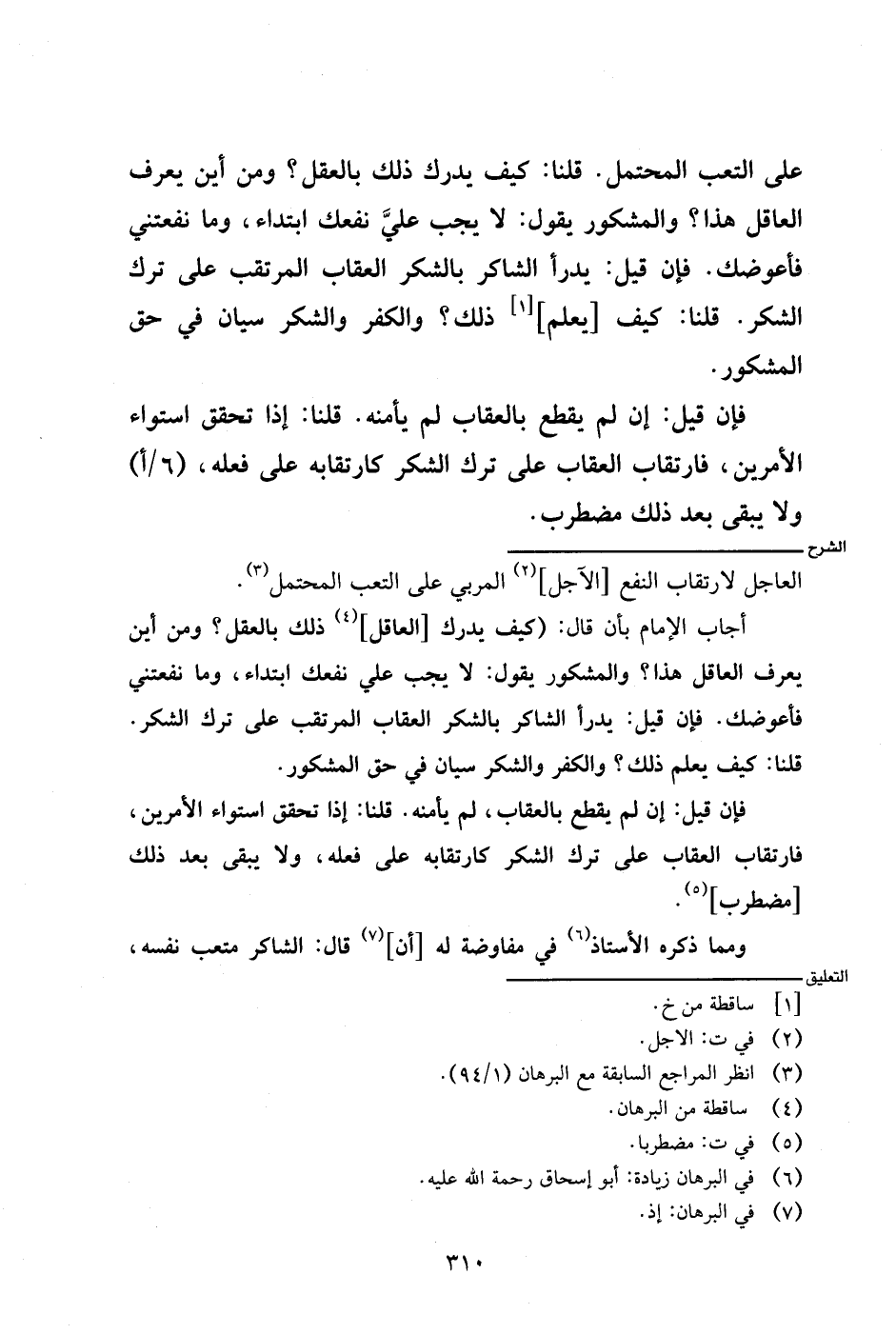 فإن قيل: إن لم يقطع بالعقاب، لم يأمنه. قلنا: إذا تحقق استواء الأمرين، فارتقاب العقاب على ترك الشكر كارتقابه على فعله، ولا يبقى بعد ذلك [مضطرب].