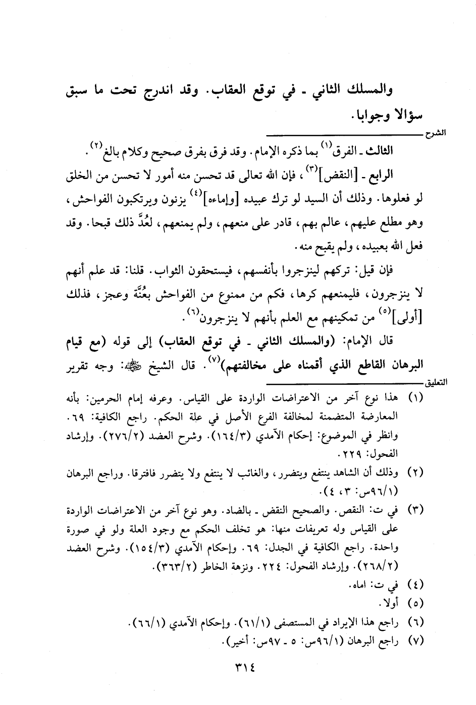 قال الإمام: (والمسلك الثاني- في توقع العقاب) إلى قوله (مع قيام البرهان القاطع الذي أقمناه على مخالفتهم). قال الشيخ - رضي الله عنه -: وجه تقرير