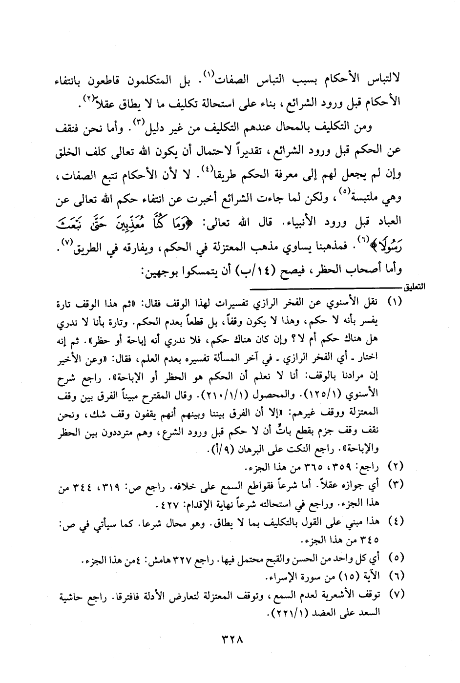 لالتباس الأحكام بسبب التباس الصفات. بل المتكلمون قاطعون بانتفاء الأحكام قبل ورود الشرائع، بناء على استحالة تكليف ما لا يطاق عقلا.