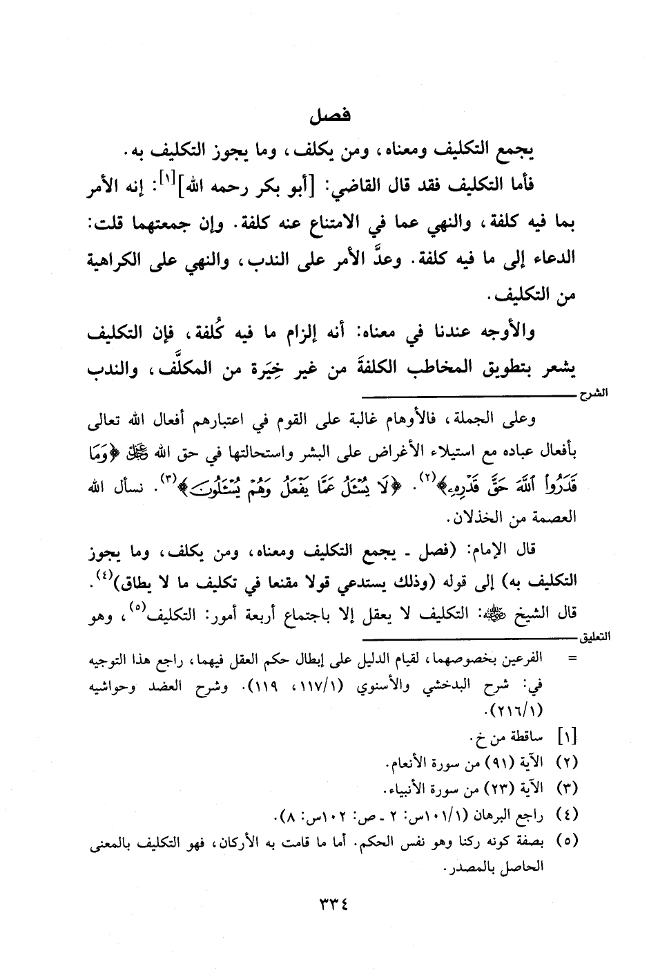 قال الإمام: (فصل- يجمع التكليف ومعناه، ومن يكلف، وما يجوز التكليف به) إلى قوله (وذلك يستدعي قولا مقنعا في تكليف ما لا يطاق).