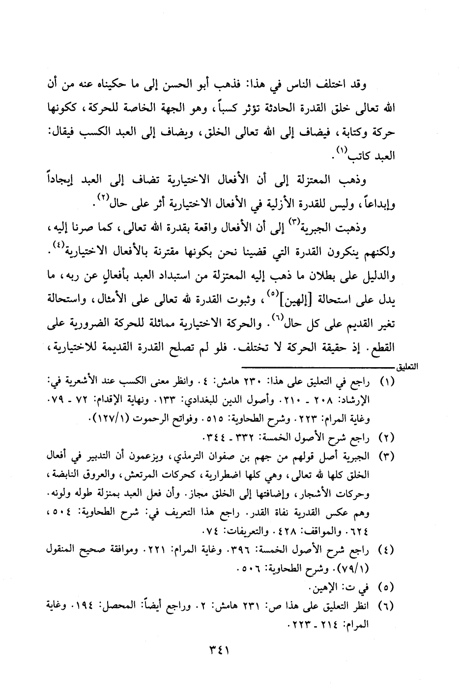 وقد اختلف الناس في هذا: فذهب أبو الحسن إلى ما حكيناه عنه من أن الله تعالى خلق القدرة الحادثة تؤثر كسبا، وهو الجهة الخاصة للحركة، ككونها حركة وكتابة، فيضاف إلى الله تعالى الخلق، ويضاف إلى العبد الكسب فيقال: العبد كاتب.