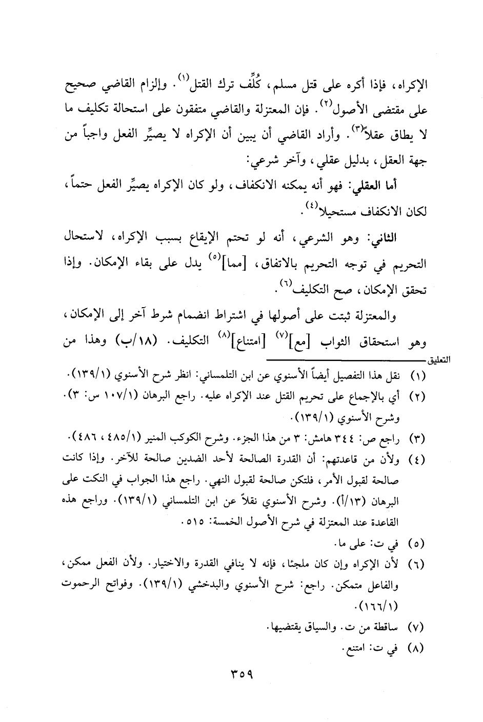 الإكراه، فإذا أكره على قتل مسلم، كلف ترك القتل. وإلزام القاضي صحيح على مقتضى الأصول. فإن المعتزلة والقاضي متفقون على استحالة تكليف ما لا يطاق عقلا. وأراد القاضي أن يبين أن الإكراه لا يصير الفعل واجبا من جهة العقل، بدليل عقلي، وآخر شرعي: