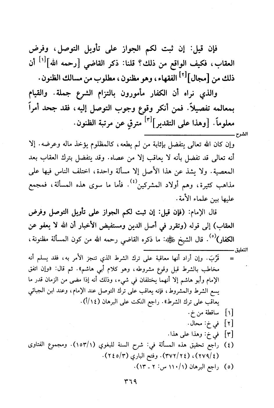 قال الإمام: (فإن قيل: إن ثبت لكم الجواز على تأويل التوصل وفرض العقاب) إلى قوله (وتقرر في أصل الدين ومستفيض الأخبار أن الله لا يعفو عن الكفار). قال الشيخ - رضي الله عنه -: ما ذكره القاضي رحمه الله من كون المسألة مظنونة،