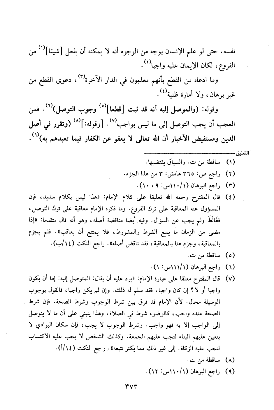 وقوله: (والموصل إليه أنه قد ثبت [قطعا] وجوب التوصل). فمن العجب أن يجب التوصل إلى ما ليس بواجب. [وقوله: ] (وتقرر في أصل الدين ومستفيض الأخبار أن الله تعالى لا يعفو عن الكفار فيما تعبدهم به).