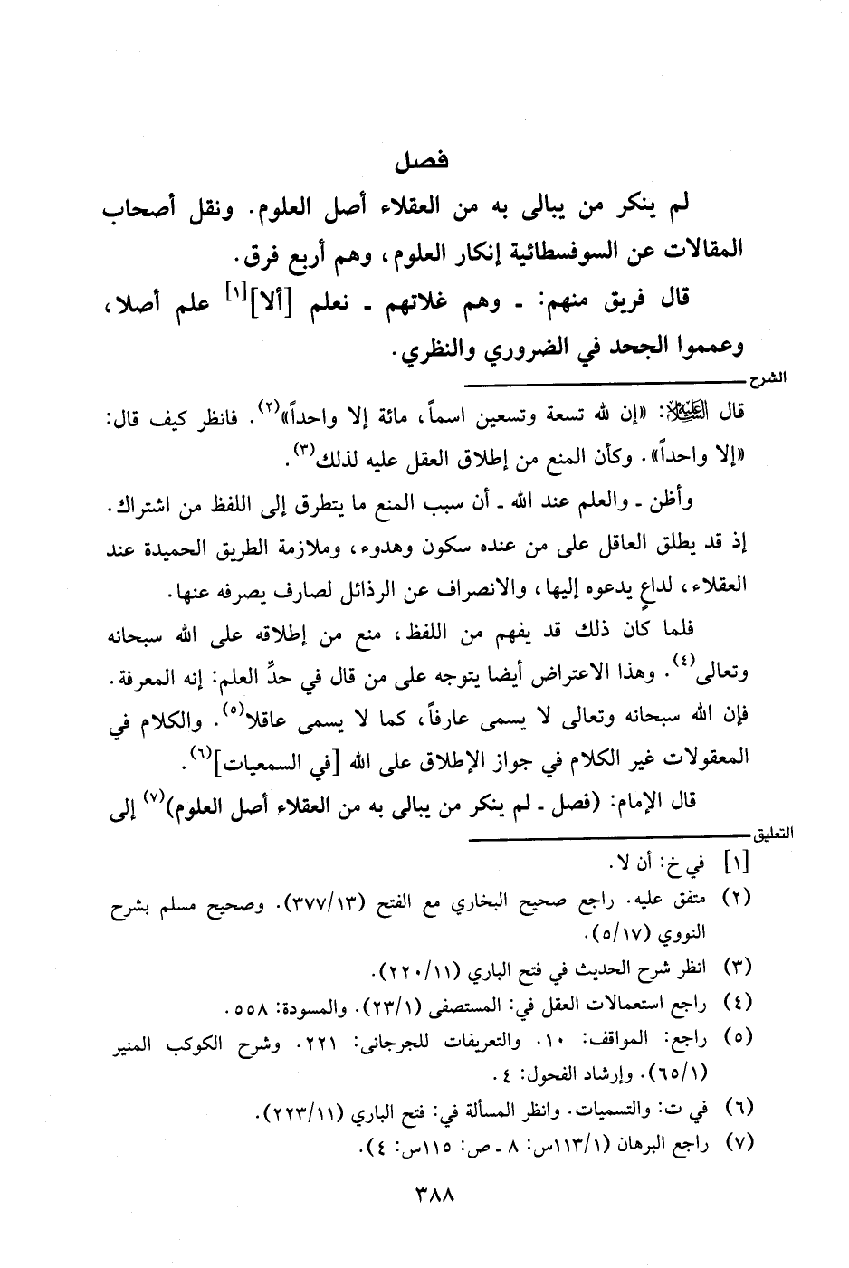 قال الإمام: (فصل- لم ينكر من يبالي به من العقلاء أصل العلوم) إلى