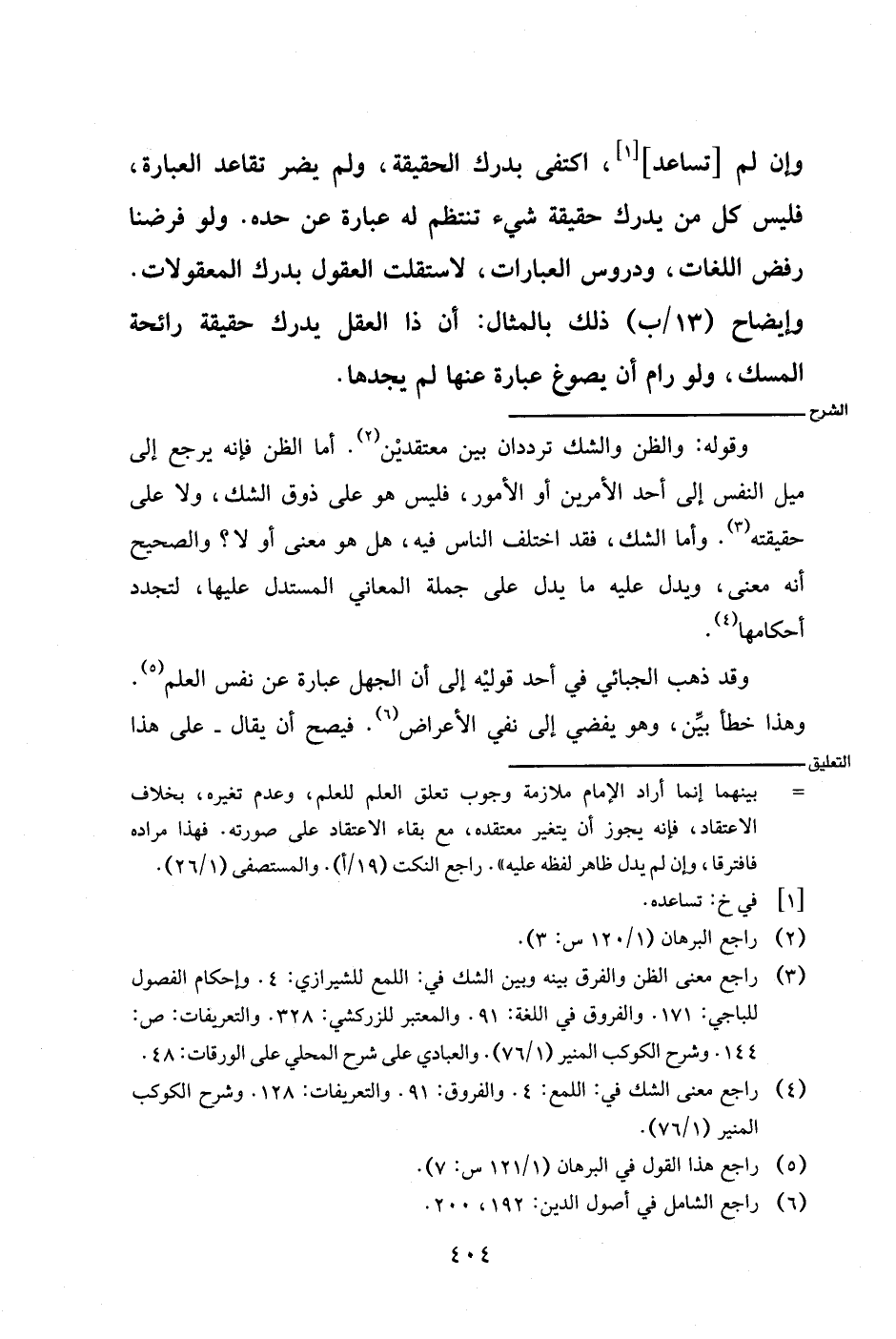وقوله: والظن والشك ترددان بين معتقدين. أما الظن فإنه يرجع إلى ميل النفس إلى أحد الأمرين أو الأمور، فليس هو على ذوق الشك، ولا على حقيقته. وأما الشك، فقد اختلف الناس فيه، هل هو معنى أو لا؟ والصحيح أنه معنى، ويدل عليه ما يدل على جملة المعاني المستدل عليها، لتجدد أحكامها.