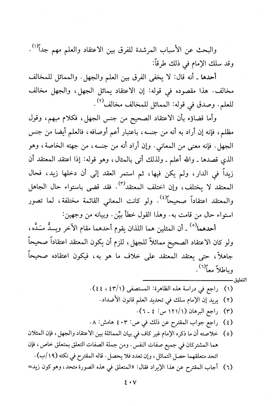 أحدهما- أن المثلين هما اللذان يقوم أحدهما مقام الآخر ويسد مسده، ولو كان الاعتقاد صحيح مماثلا للجهل، للزم أن يكون المعتقد اعتقادا صحيحا جاهلا، حتى يعتقد المعتقد على خلاف ما هو به، فيكون اعتقاده صحيحا وباطلان معا.