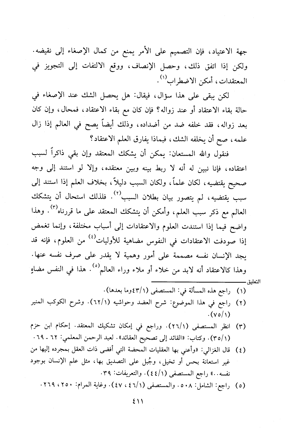لكن يبقى على هذا سؤال، فيقال: هل يحصل الشك عند الإصغاء في حالة بقاء الاعتقاد أو عند زواله؟ فإن كان مع بقاء الاعتقاد، فمحال، وإن كان بعد زواله، فقد خلفه ضد من أضداده، وذلك أيضا يصح في العالم إذا زال علمه، صح أن يخلفه الشك، فبماذا يفارق العلم الاعتقاد؟