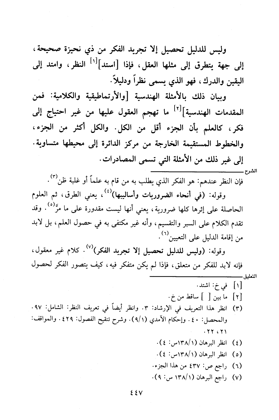 وقوله: (وليس للدليل تحصيل إلا تجريد الفكر). كلام غير معقول، فإنه لابد للفكر من متعلق، فإذا لم يكن متفكر فيه، كيف يتصور الفكر لحصول