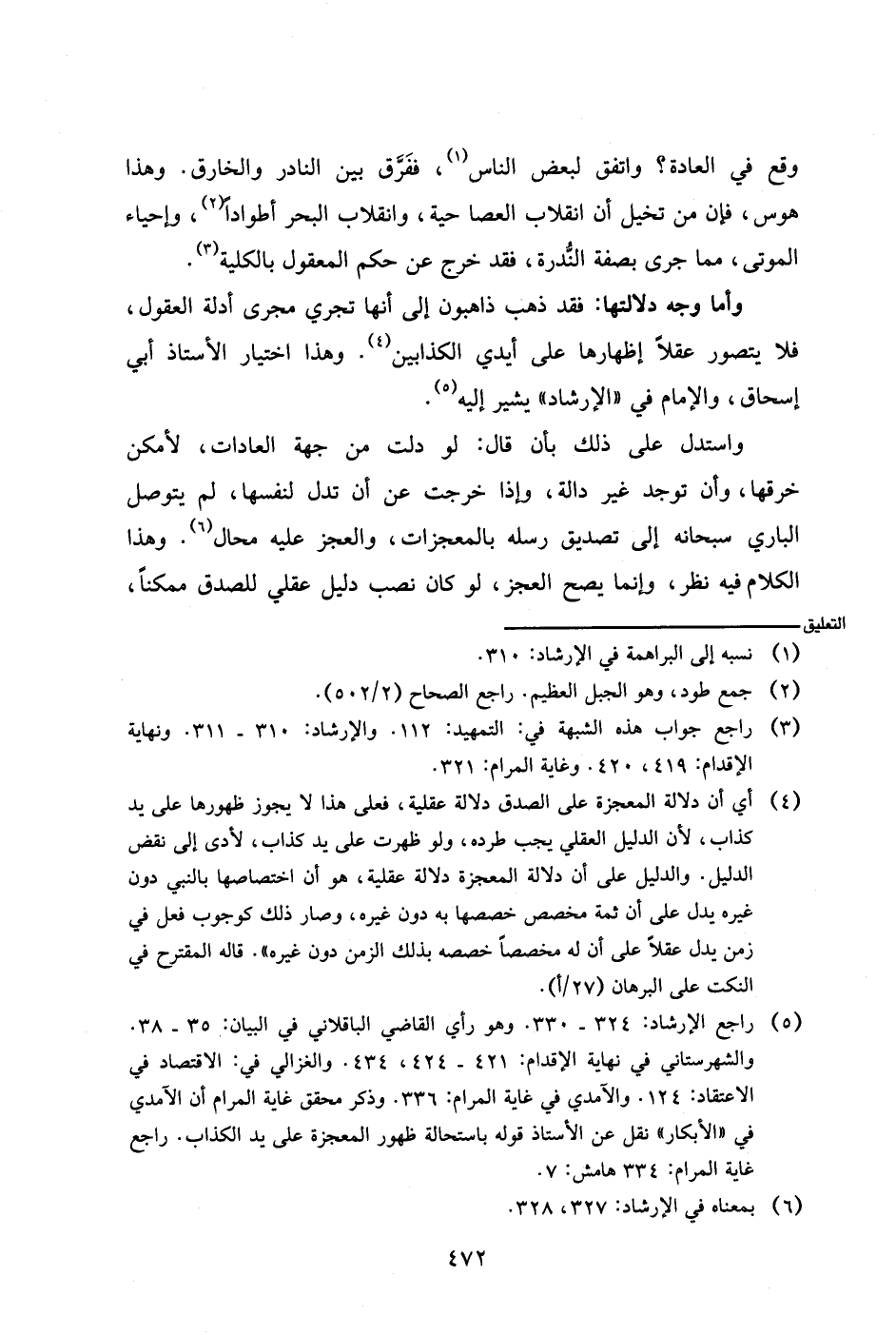وأما وجه دلالتها: فقد ذهب ذاهبون إلى أنها تجري مجرى أدلة العقول، فلا يتصور عقلا إظهارها على أيدي الكذابين. وهذا اختيار الأستاذ أبي إسحاق، والإمام في (الإرشاد) يشير إليه.