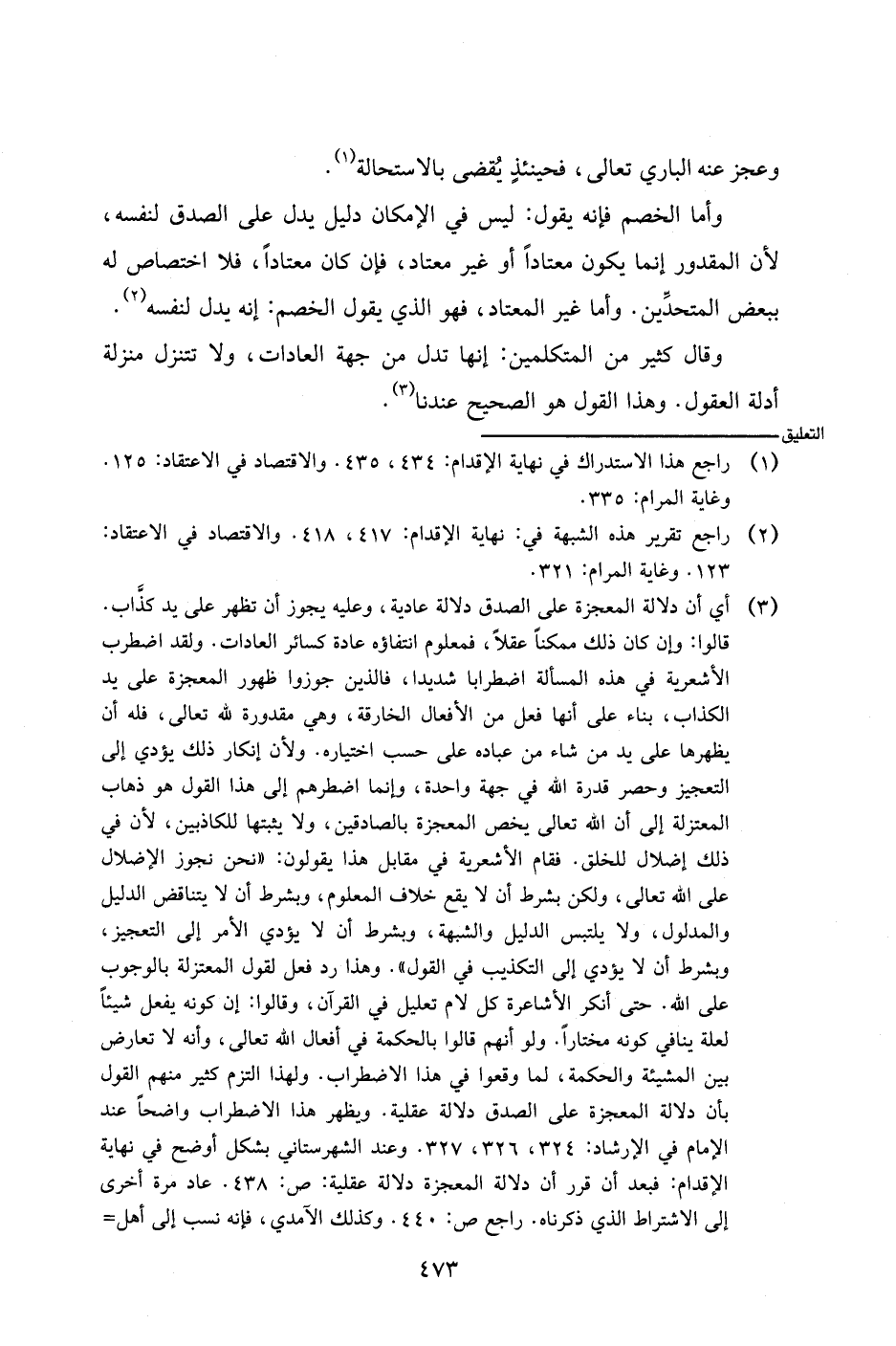 وأما الخصم فإنه يقول: ليس في الإمكان دليل يدل على الصدق لنفسه، لأن المقدور إنما يكون معتادا أو غير معتاد، فإن كان معتاداً، فلا اختصاص له ببعض المتحدين. وأما غير المعتاد، فهو الذي يقول الخصم: إنه يدل لنفسه.