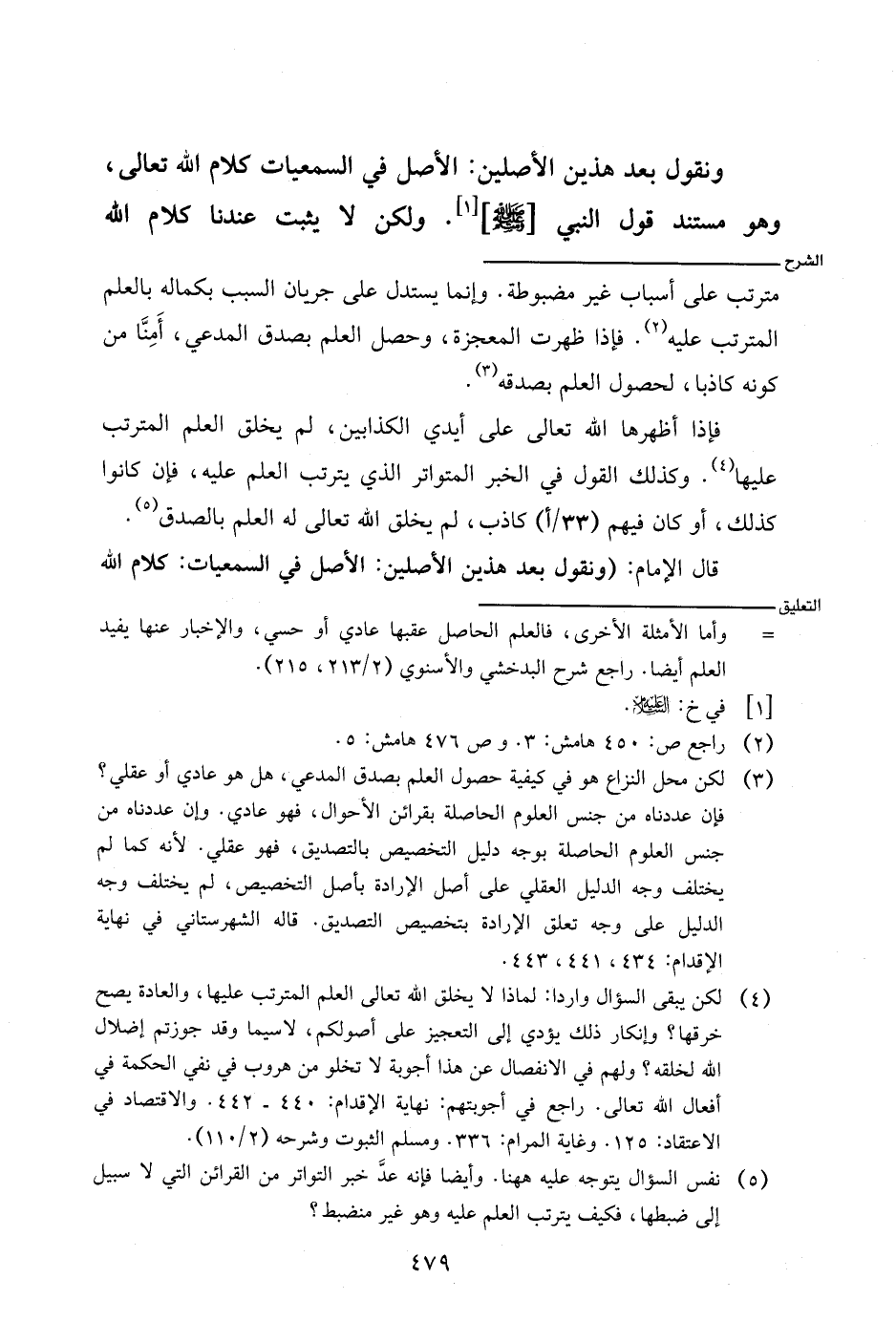 قال الإمام: (ونقول بعد هذين الأصلين: الأصل في السمعيات: كلام الله