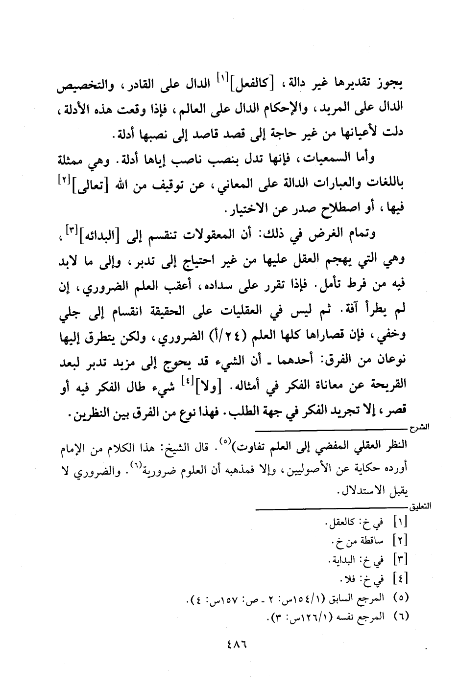 النظر العقلي المفضي إلى العلم تفاوت). قال الشيخ: هذا الكلام من الإمام أورده حكاية عن الأصوليين، وإلا فمذهبه أن العلوم ضرورية. والضروري لا يقبل الاستدلال.