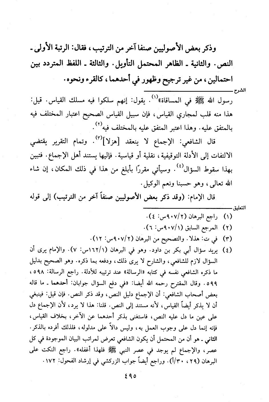 قال الإمام: (وقد ذكر بعض الأصوليين صنفا آخر من الترتيب) إلى قوله