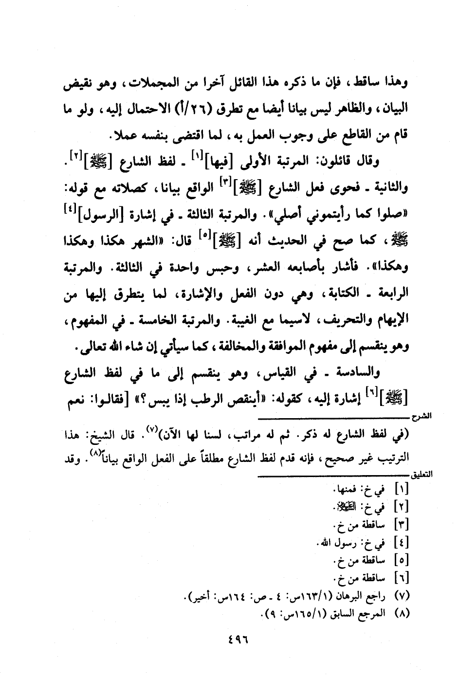 (في لفظ الشارع له ذكر. ثم له مراتب، لسنا لها الآن). قال الشيخ: هذا الترتيب غير صحيح، فإنه قدم لفظ الشارع مطلقا على الفعل الواقع بيانا. وقد