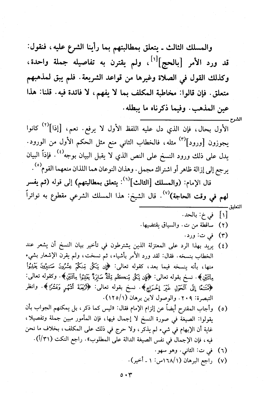 قال الإمام: (والمسلك [الثالث]: يتعلق بمطالبتهم) إلى قوله (ثم يفسر لهم في وقت الحاجة). قال الشيخ: هذا المسلك الشرعي مقطوع به تواترا