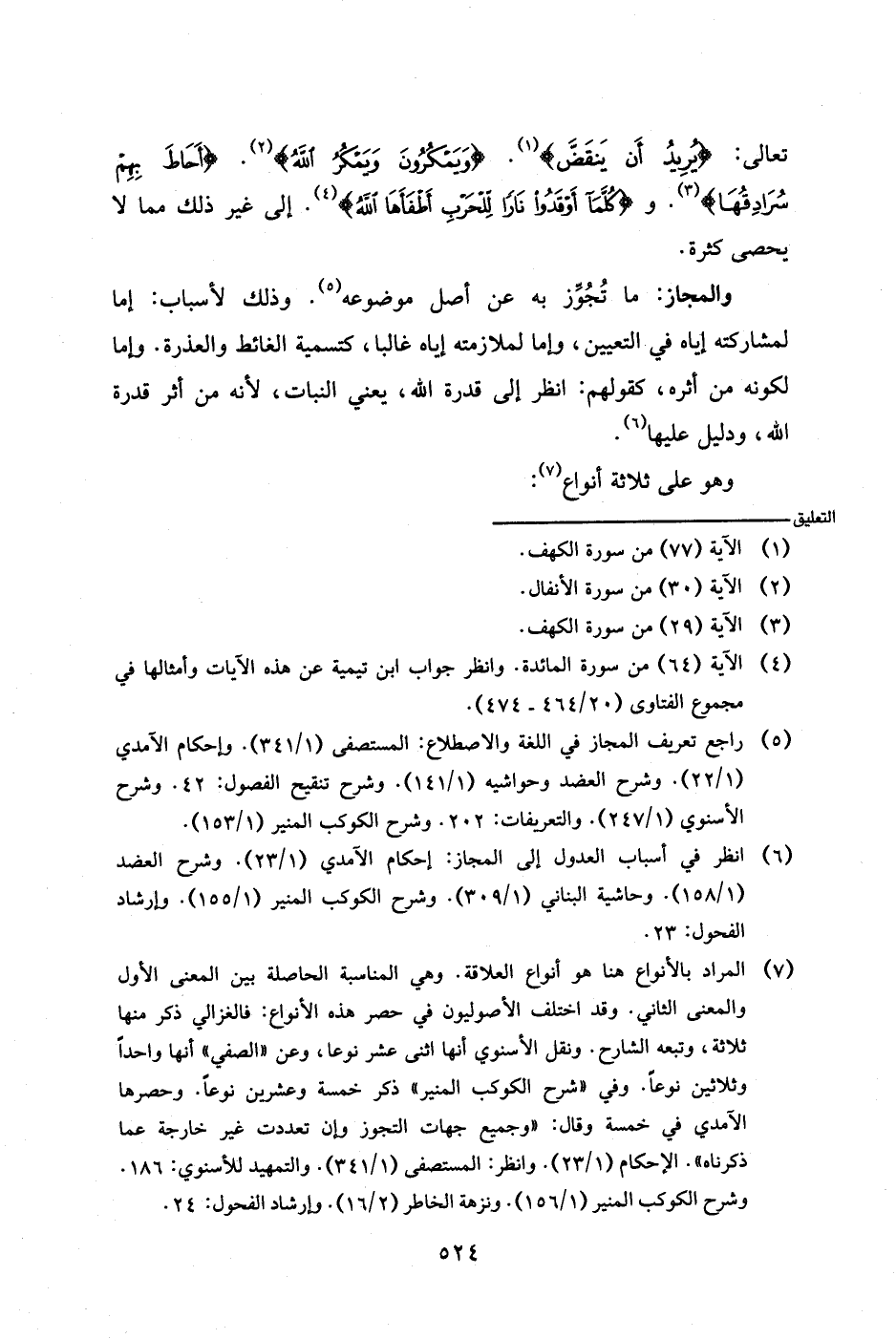 تعالى: {يريد أن ينقض}. {ويمكرون ويمكر الله}. {أحاط بهم سرادقها}. و {كلما أوقدوا نارا للحرب أطفأها الله}. إلى غير ذلك مما لا يحصى كثرة.