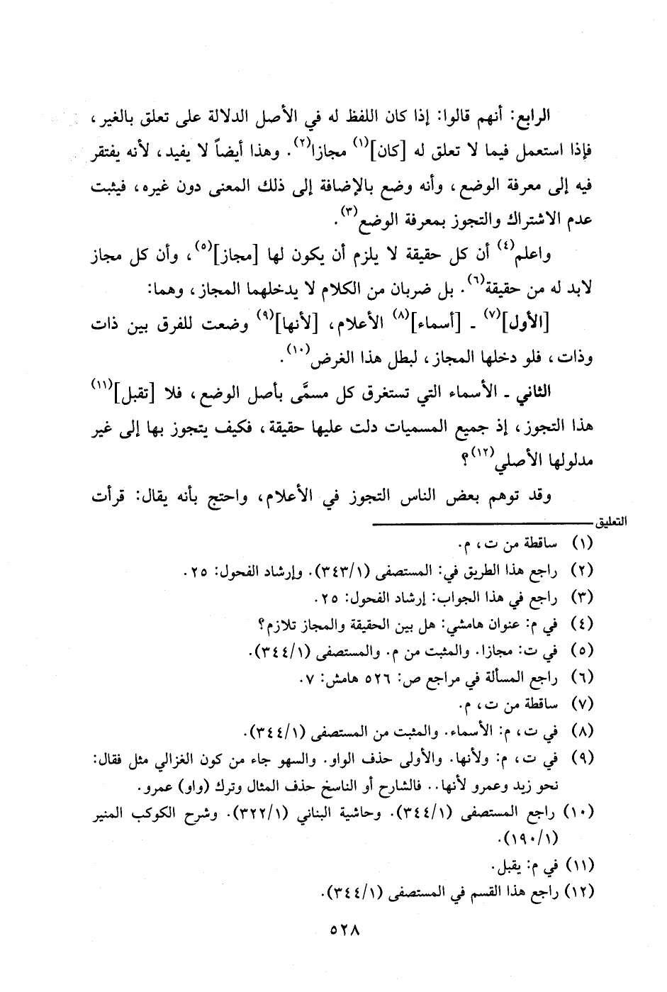 الرابع: أنهم قالوا: إذا كان اللفظ له في الأصل الدلالة على تعلق بالغير، فإذا استعمل فيما لا يتعلق له [كان] مجازا. وهذا أيضا لا يفيد، لأنه يفتقر فيه إلى معرفة الوضع، وأنه وضع بالإضافة إلى ذلك المعنى دون غيره، فيثبت عدم الاشتراك والتجوز بمعرفة الوضع.