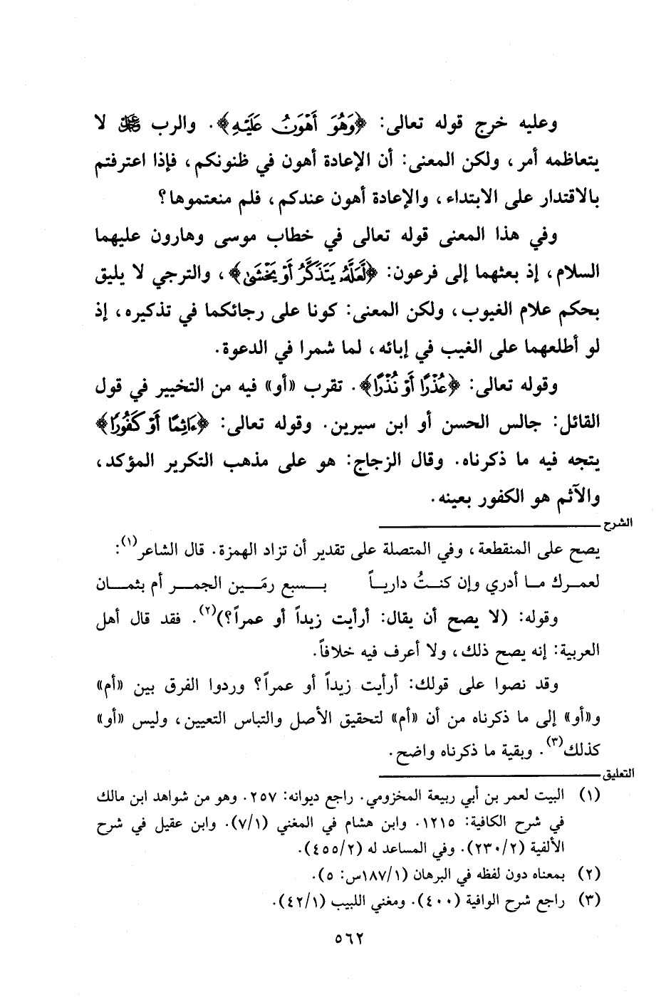 وقد نصوا على قولك: أرأيت زيدا أو عمرا؟ وردوا الفرق بين (أم) و (أو) إلى ما ذكرناه من أن (أم) لتحقيق الأصل والتباس التعيين، وليس (أو) كذلك. وبقية ما ذكرناه واضح.