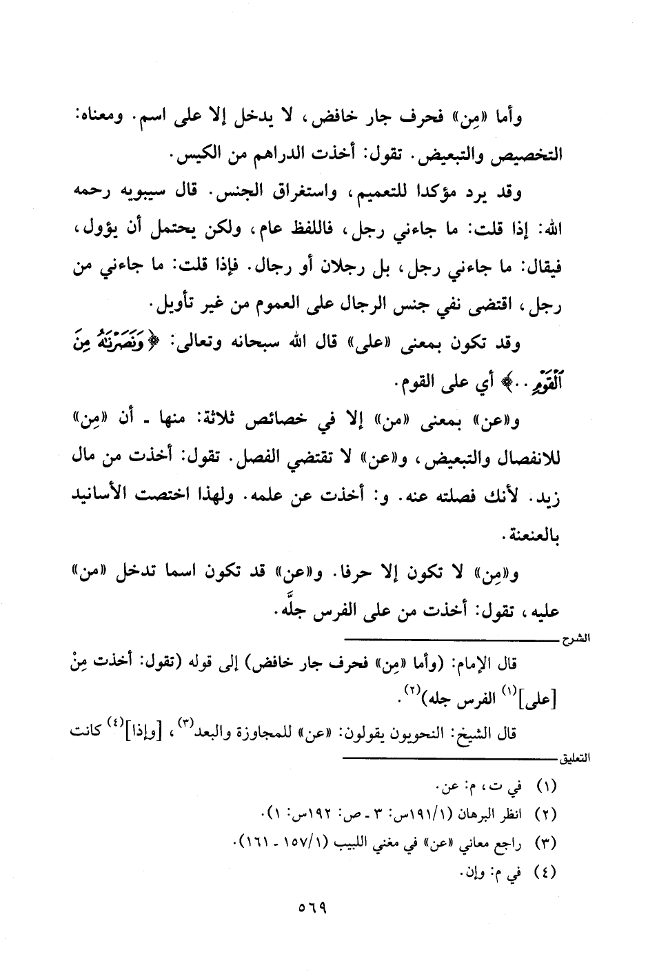 قال الإمام: (وأما (من) فحرف جار خافض) إلى قوله (تقول: أخذت من [على] الفرس جله).