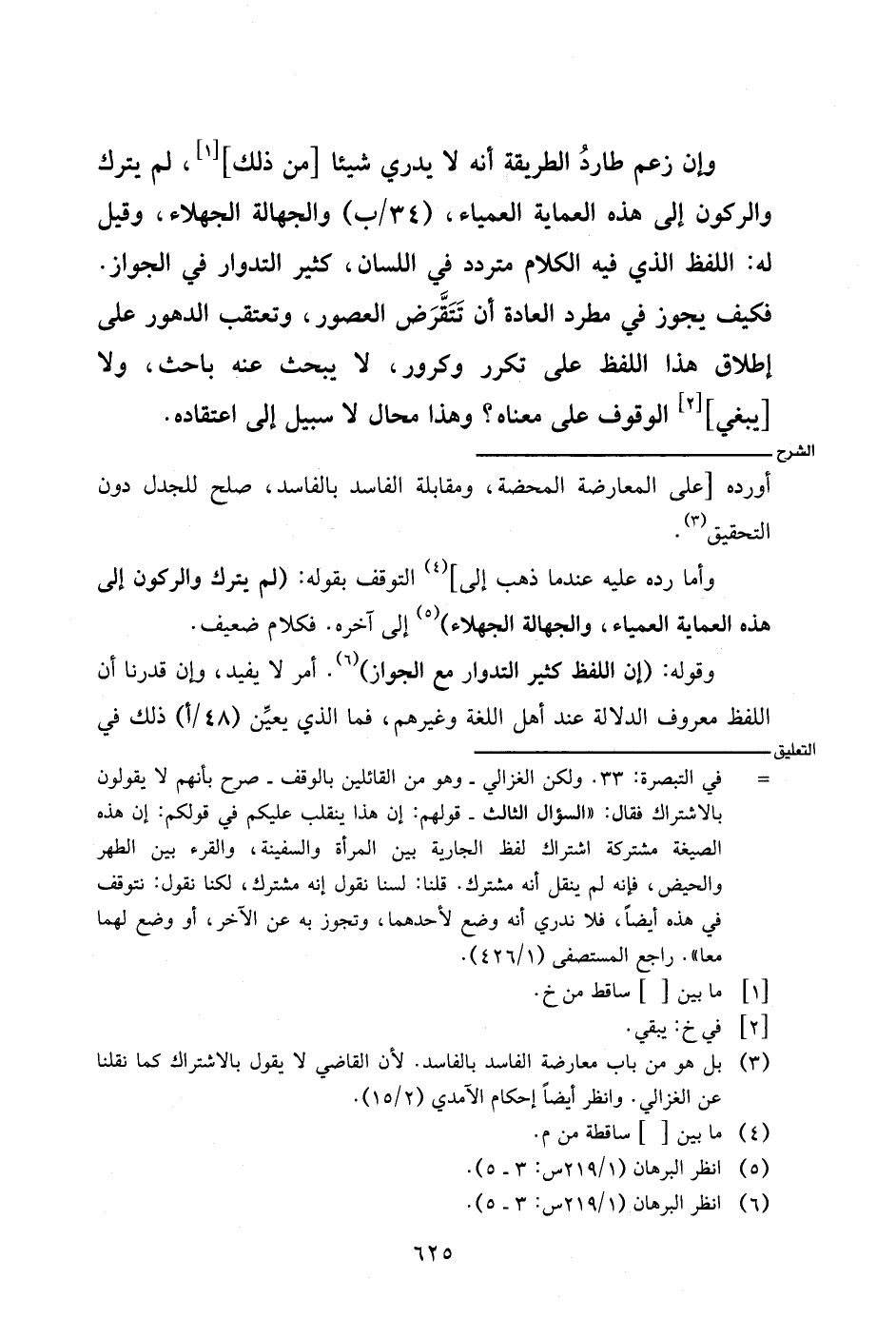 وأما رد عليه عندما ذهب إلى] التوقف بقوله: (لم يترك والركون إلى هذه العماية العمياء، والجهالة والجهلاء) إلى آخره. فكلام ضعيف.