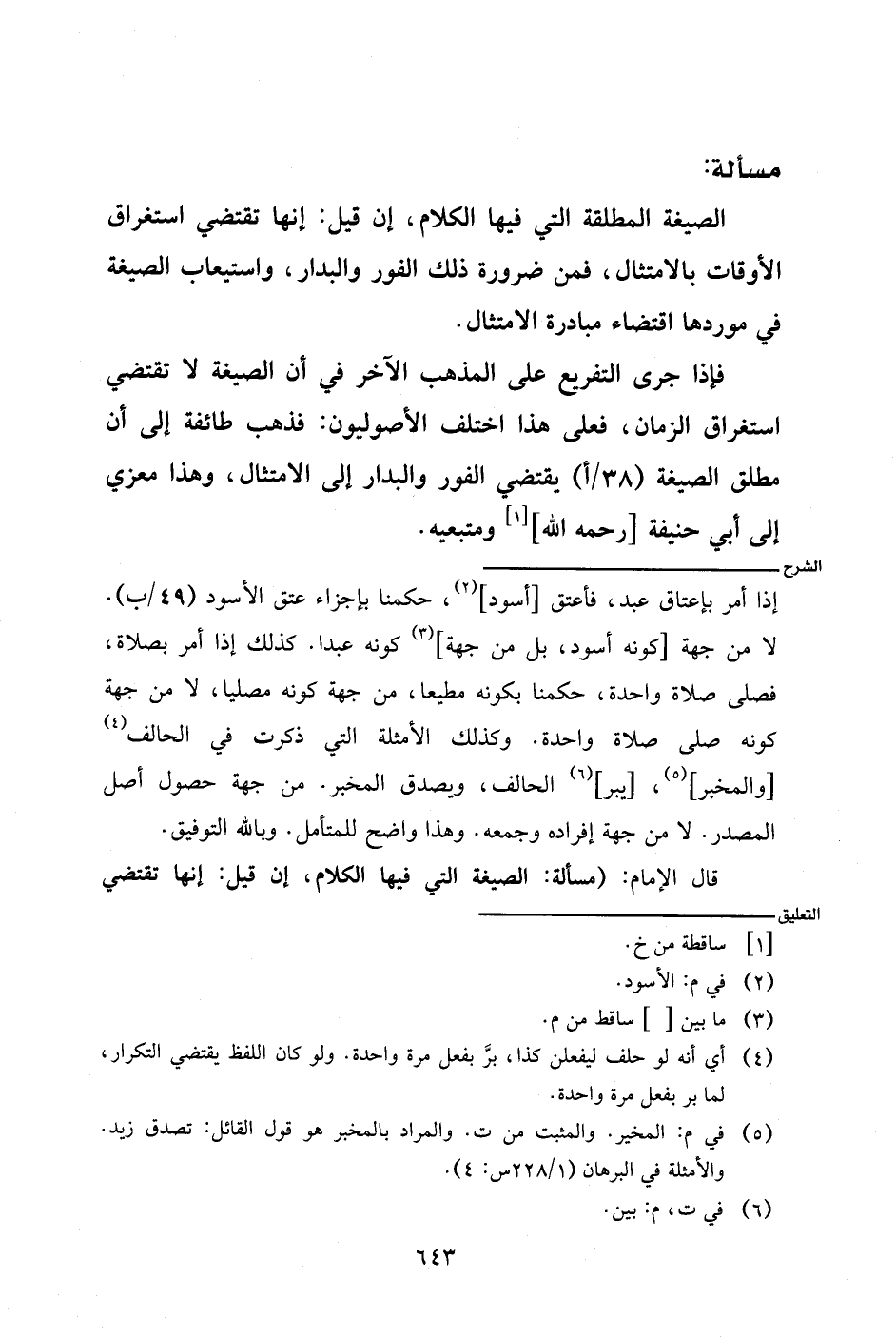 قال الإمام: (مسألة الصيغة التي فيها الكلام، إن قيل: إنها تقتضي