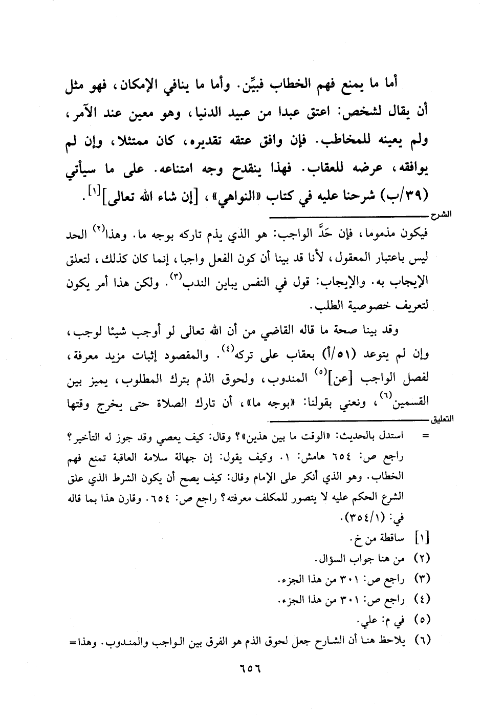 وقد بينا صحة ما قال القاضي من أن الله تعالى لو أوجب شيئا لوجب، وإن لم يتوعد (٥١/أ) بعقاب على تركه. والمقصود إثبات مزيد معرفة، لفصل الواجب [عن] المندوب، ولحوق الذم بترك المطلوب، يميز بين القسمين، ونعني بقولنا: (بوجه ما)، أن تارك الصلاة حتى يخرج وقتها