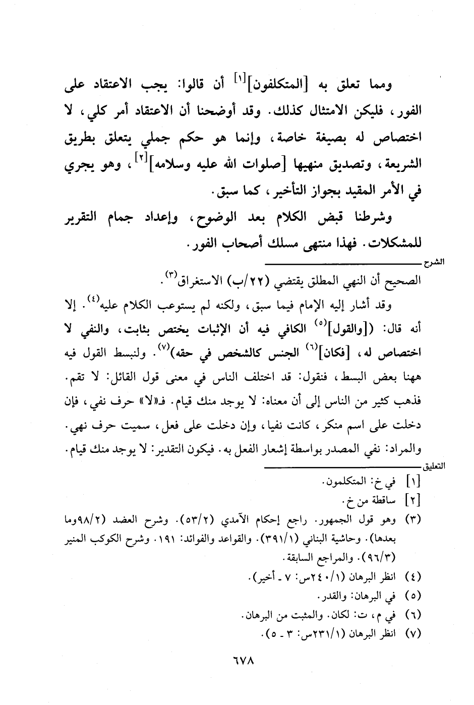 وقد أشار إليه الإمام فيما سبق، ولكنه لم يستوعب الكلام عليه. إلا أنه قال: ([والقول] الكافي فيه أن الإثبات يختص بثابت، والنفي لا اختصاص له، [فكان] الجنس كالشخص في حقه). ولنبسط القول فيه ههنا بعض البسط، فنقول: قد اختلف الناس في معنى قول القائل: لا تقم. فذهب كثير من الناس إلى أن معناه: لا يوجد منك قيام. فـ (لا) حرف نفي، فإن دخلت على اسم منكر، كانت نفيا، وإن دخلت على فعلن سميت حرف نهي. والمراد: نفي المصدر بواسطة إشعار الفعل به. فيكون التقدير: لا يوجد منك قيام.