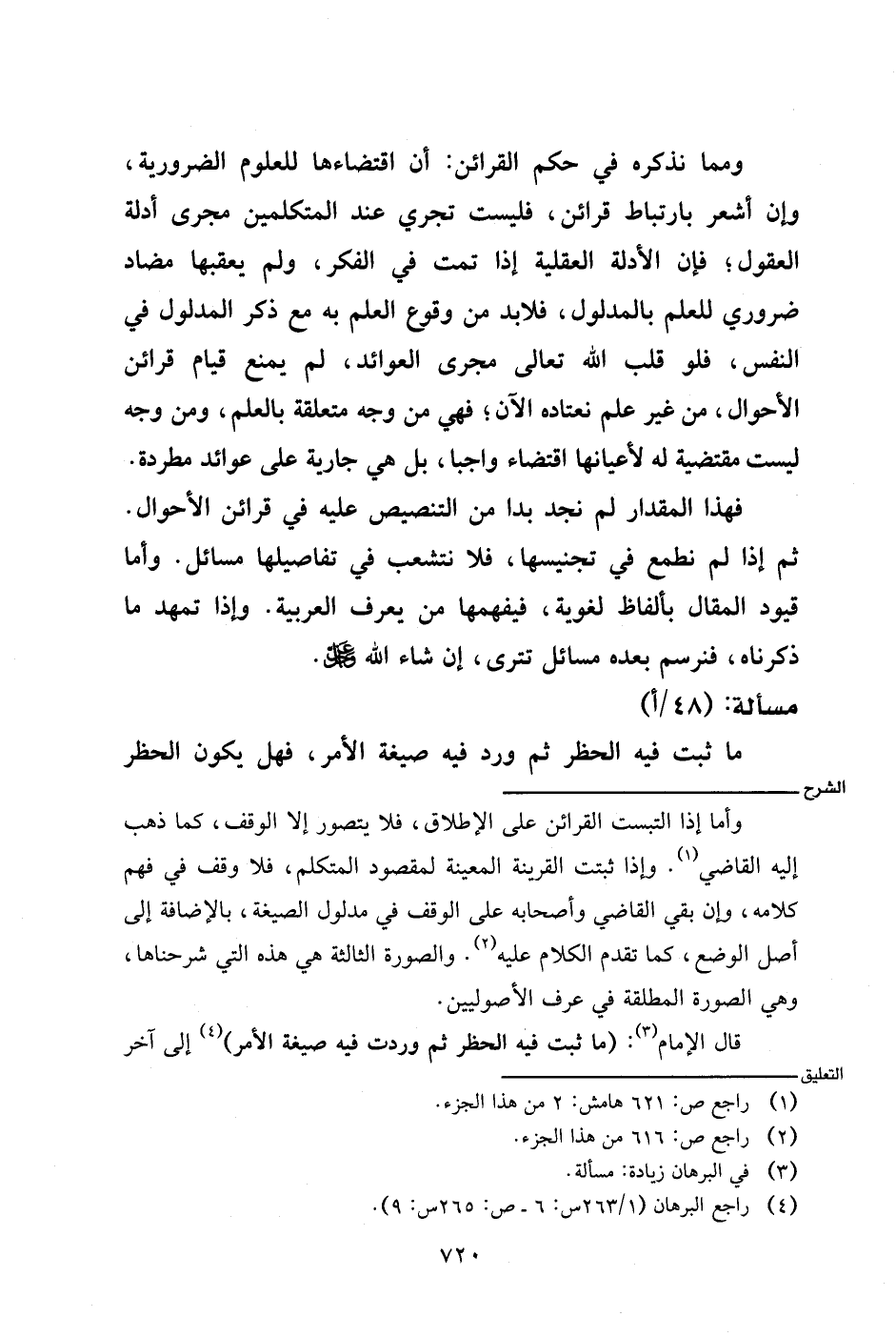 وأما إذا التبست القرائن على الإطلاق، فلا يتصور إلا الوقف، كما ذهب إليه القاضي. وإذا ثبتت القرينة المعينة لمقصود المتكلم، فلا وقف في فهم كلامه، وإن بقي القاضي وأصحابه على الوقف في مدلول الصيغة، بالإضافة إلى أصل الوضع، كما تقدم الكلام عليه. والصورة الثالثة في هذه التي شرحناها، وهي الصورة المطلقة في عرف الأصوليين.