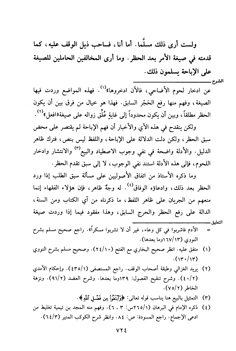 عن ادخار لحوم الأضاحي، فالآن ادخروها). فهذه المواضع وردت فيها الصيغة، وفهم منها رفع الحجر السابق. فهذا هو خيال من فرق بين أن يكون الحظر مطلقا، وبين أن يكون محدودا إلى غاية علق زواله على صيغة (افعل).