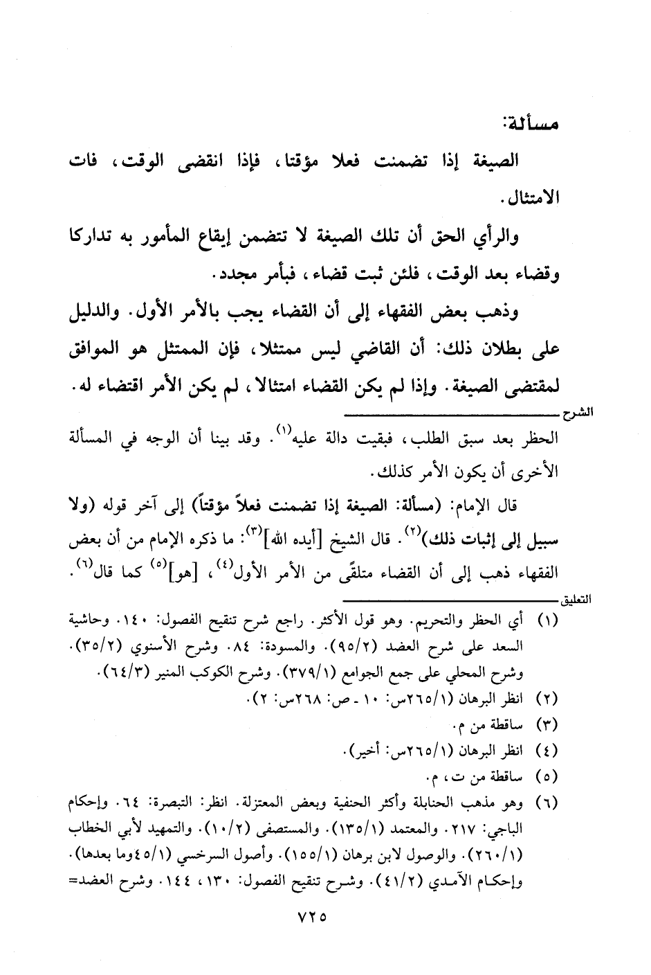 قال الإمام: (مسألة: الصيغة إذا تضمنت فعلا مؤقتا) إلى آخر قوله (ولا سبيل إلى إثبات ذلك). قال الشيخ [أيده الله]: ما ذكره الإمام من أن بعض الفقهاء ذهب إلى أن القضاء متلقى من الأمر الأول، [هو] كما قال.