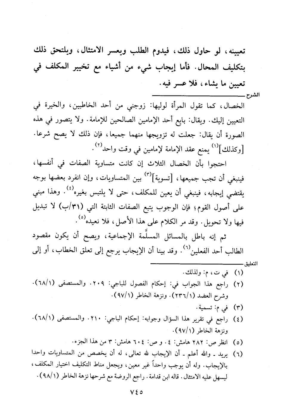 ثم إنه باطل بالمسائل المسلمة الإجماعية، ويصح أن يكون مقصود الطالب أحد الفعلين. وقد بينا أن الإيجاب يرجع إلى تعلق الخطاب، أو إلى