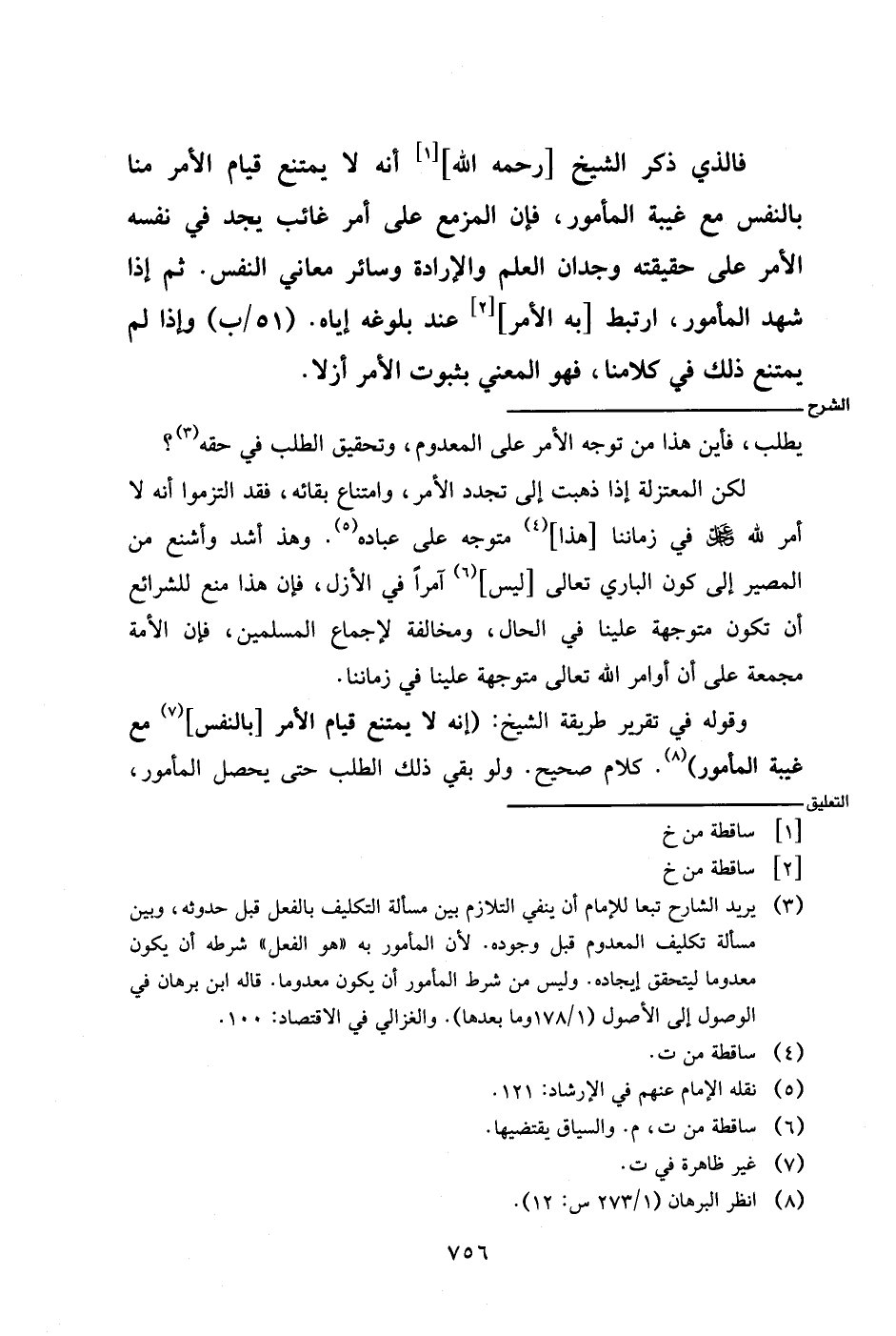 وقوله في تقرير طريقة الشيخ: (إنه لا يمتنع قيام الأمر [بالنفس] مع غيبة المأمور). كلام صحيح. ولو بقي ذلك الطلب حتى يحصل المأمور،