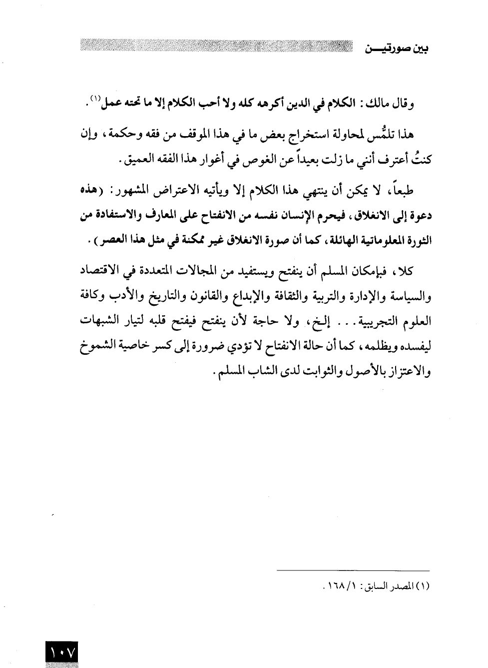طبعًا، لا يمكن أن ينتهي هذا الكلام إلا ويأتيه الاعتراض المشهور: (هذه دعوة إلى الانغلاق، فيحرم الإنسان نفسه من الانفتاح على المعارف والاستفادة من الثورة المعلوماتية الهائلة، كما أن صورة الانغلاق غير ممكنة في مثل هذا العصر).