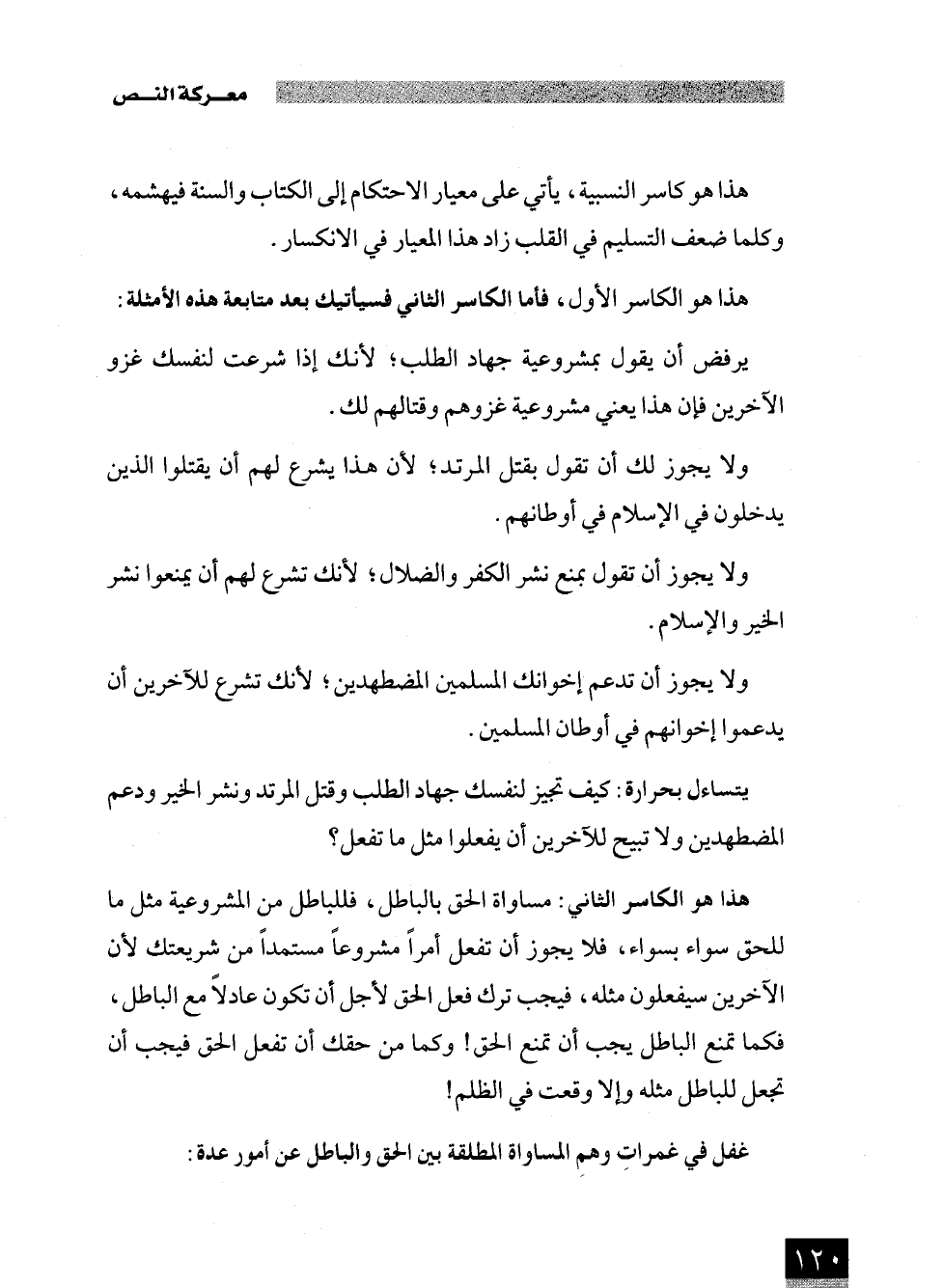 يتساءل بحرارة: كيف تجيز لنفسك جهاد الطلب وقتل المرتد ونشر الخير ودعم المضطهدين ولا تبيح للآخرين أن يفعلوا مثل ما تفعل؟