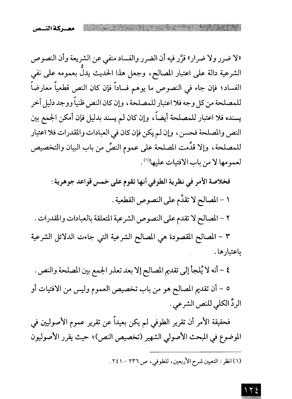 فخلاصة الأمر في نظرية الطوفي أنها تقوم على خمس قواعد جوهرية: