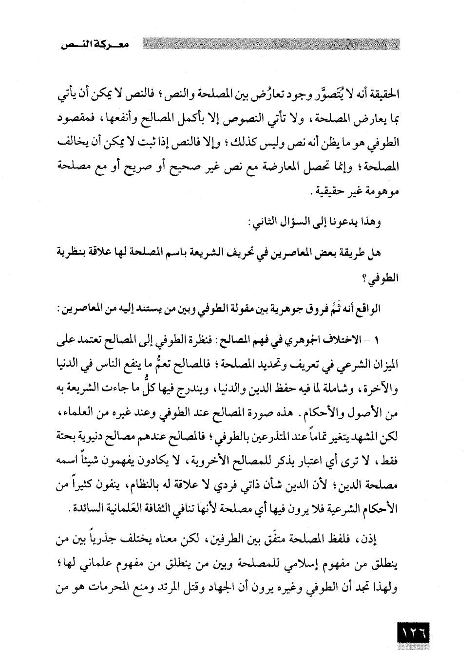 الواقع أنه ثَمَّ فروق جوهرية بين مقولة الطوفي وبين من يستند إليه من المعاصرين: