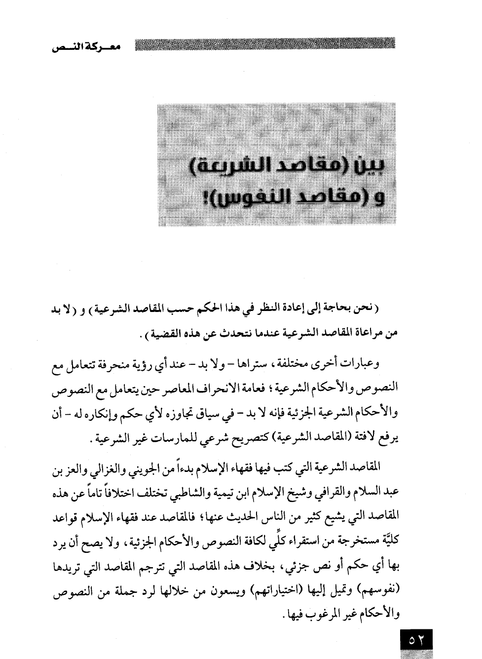 (نحن بحاجة إلى إعادة النظر في هذا الحكم حسب المقاصد الشرعية) و (لابد من مراعاة المقاصد الشرعية عندما نتحدث عن هذه القضية).