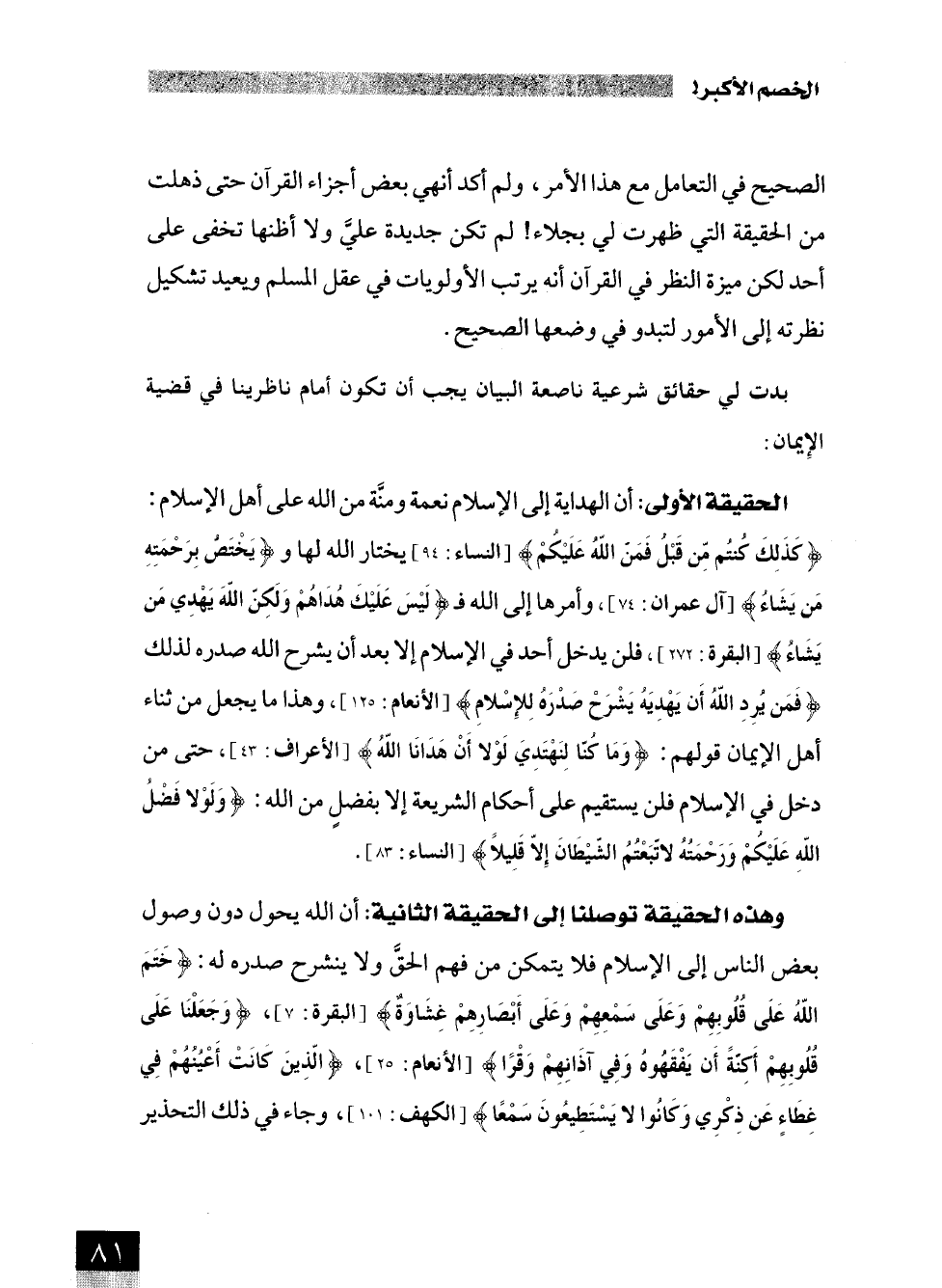 بدت لي حقائق شرعية ناصعة البيان يجب أن تكون أمام ناظرينا في قضية الإِيمان:
