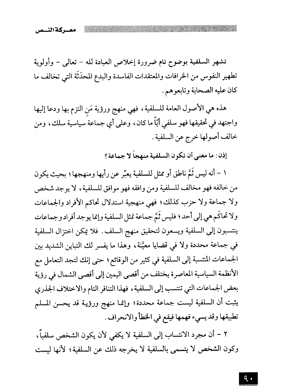 2 - أن مجرد الانتساب إلى السلفية لا يكفي لأن يكون الشخص سلفيًا، وكون الشخص لا يتسمى بالسلفية لا يخرجه ذلك عن السلفية؛ لأنها ليست