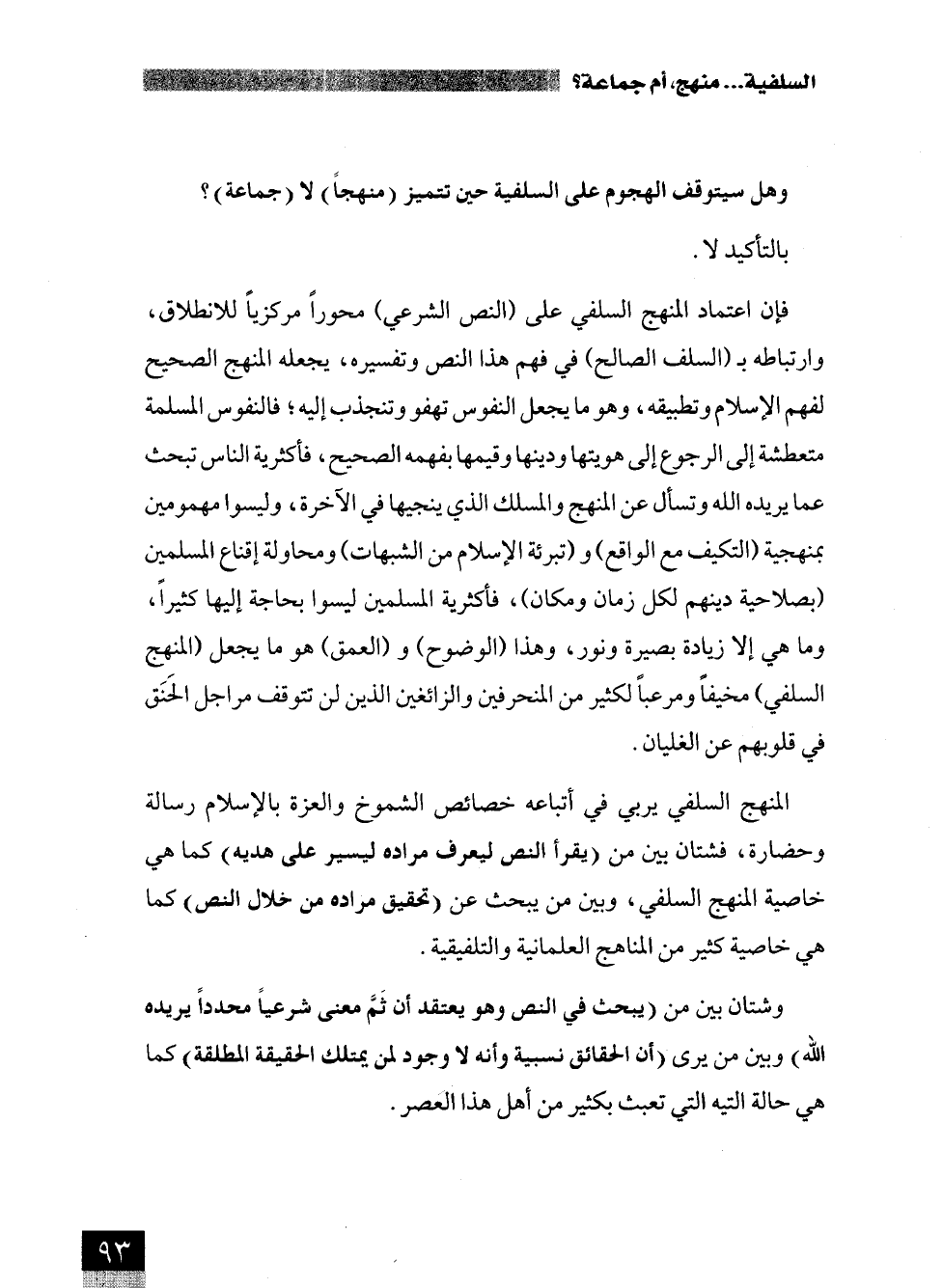 وهل سيتوقف الهجوم على السلفية حين تتميز (منهجًا) لا (جماعة)؟