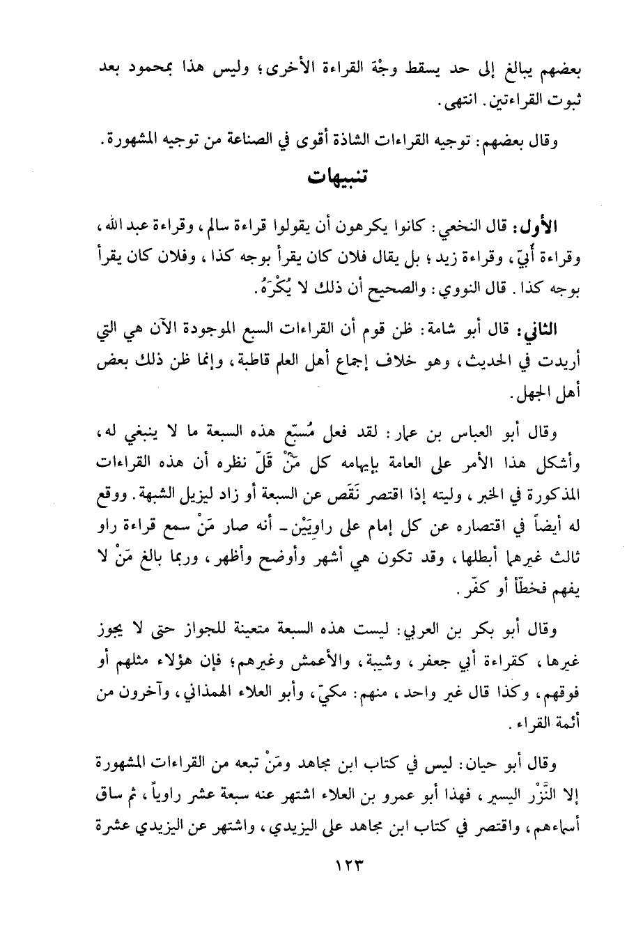 الأول: قال النخعي: كانوا يكرهون أن يقولوا قراءة سالم، وقراءة عبد الله، وقراءة أبيّ، وقراءة زيد، بل يقال فلان كان يقرأ بوجه كذا، وفلان كان يقرأ بوجه كذا.