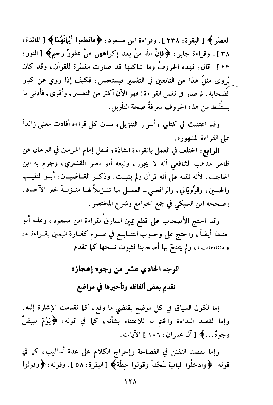 وقد اعتنيت في كتابي " أسرار التنزيل " ببيان كل قراءة أفادت معنى زائداً