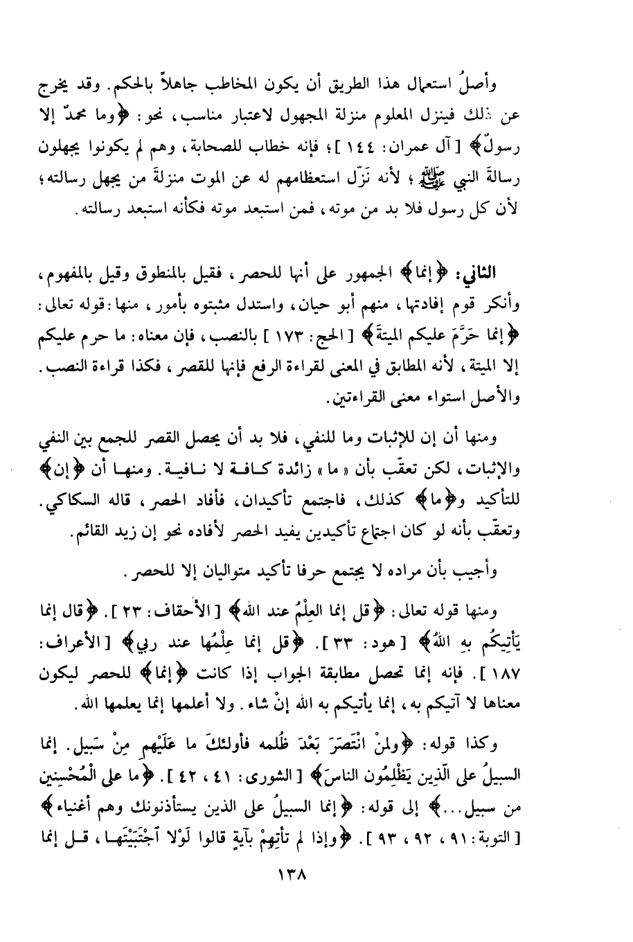 الثاني: (إنما) الجمهور على أنها للحصر، فقيل بالمنطوق وقيل بالمفهوم.