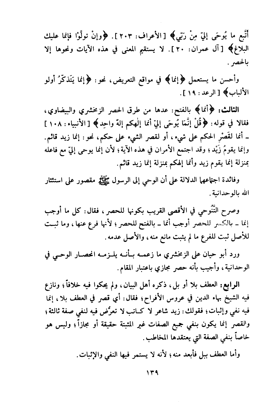 لا يستقيم المعنى في هذه الآيات ونحوها إلا بالحصر.