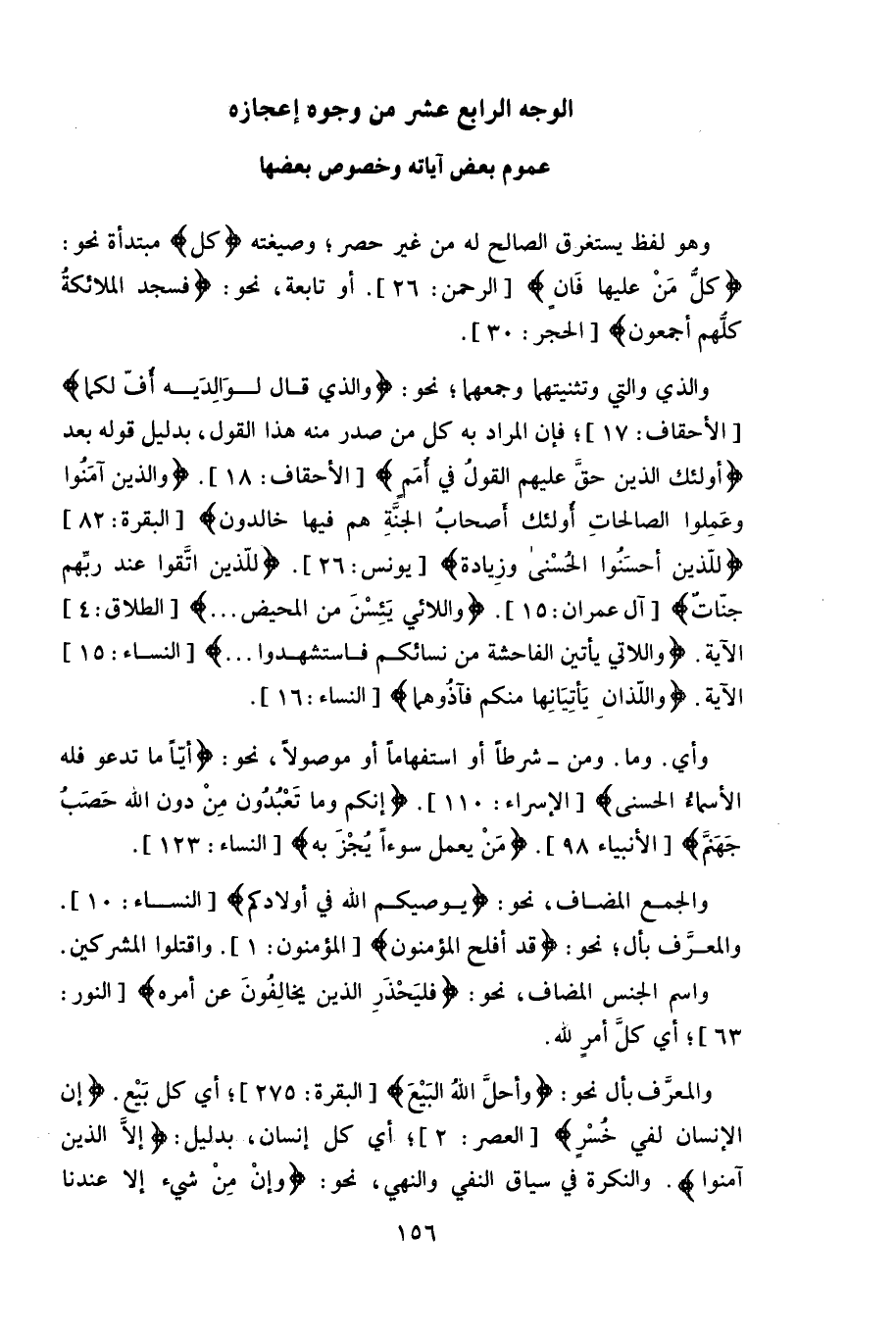 الوجه الرابع عشر من وجوه إعجازه (عموم بعض آياته وخصوص بعضها)