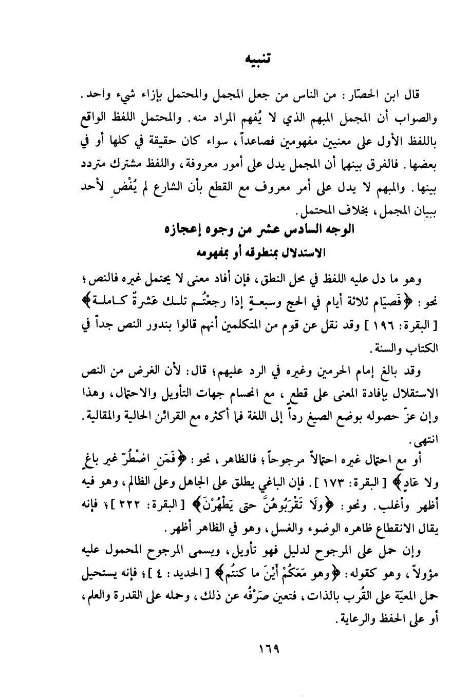 الوجه السادس عشر من وجوه إعجازه (الاستدلال بمنطوته أو بمفهومه)