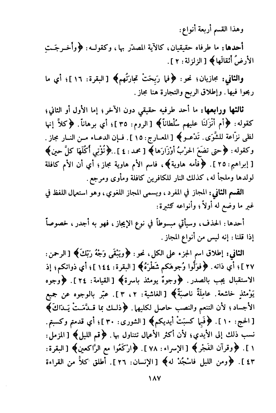 الثاني: إطلاق اسم الجزء على الكل، نحو: (وَيَبْقَى وَجْهُ رَبِّكَ) ، أي ذاته.